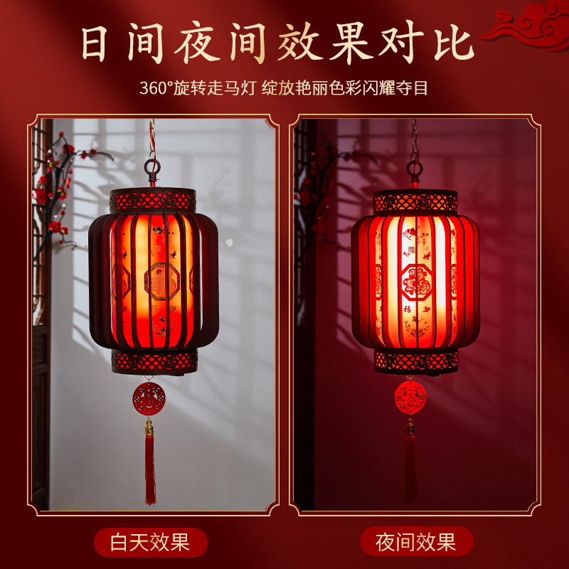 木質旋轉走馬紅燈籠過年陽臺宮燈籠裝 飾 古風中式 2025新年春節新款由