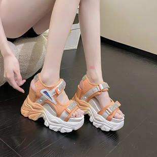 鞋 厚底增高松糕涼鞋 百搭時裝 沙灘靴子時尚 女2024羅馬新款 夾趾夏季