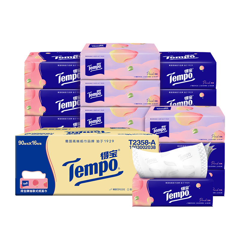 得寶軟抽輕淺桃香抽紙家用實惠箱裝 90抽 16包 百億補貼由