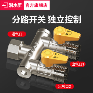 潛水艇燃氣三通閥一進二出加厚黃銅4分燃氣閥門三通接頭帶開關由