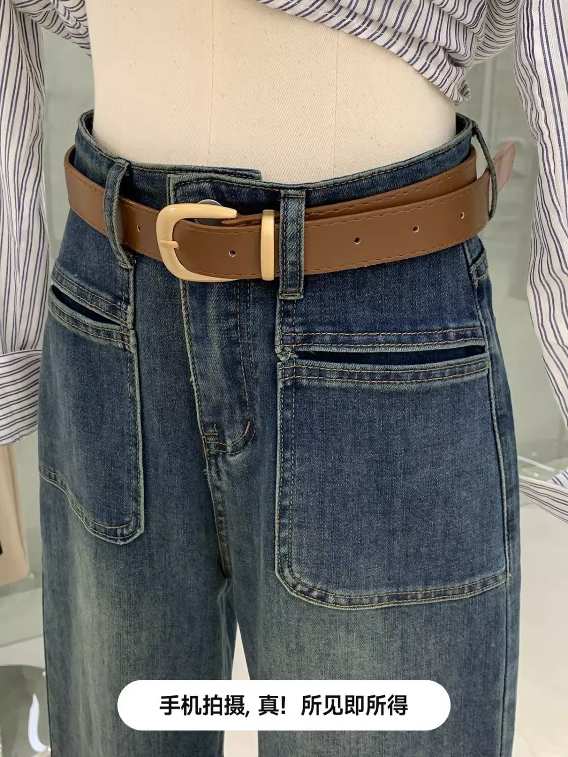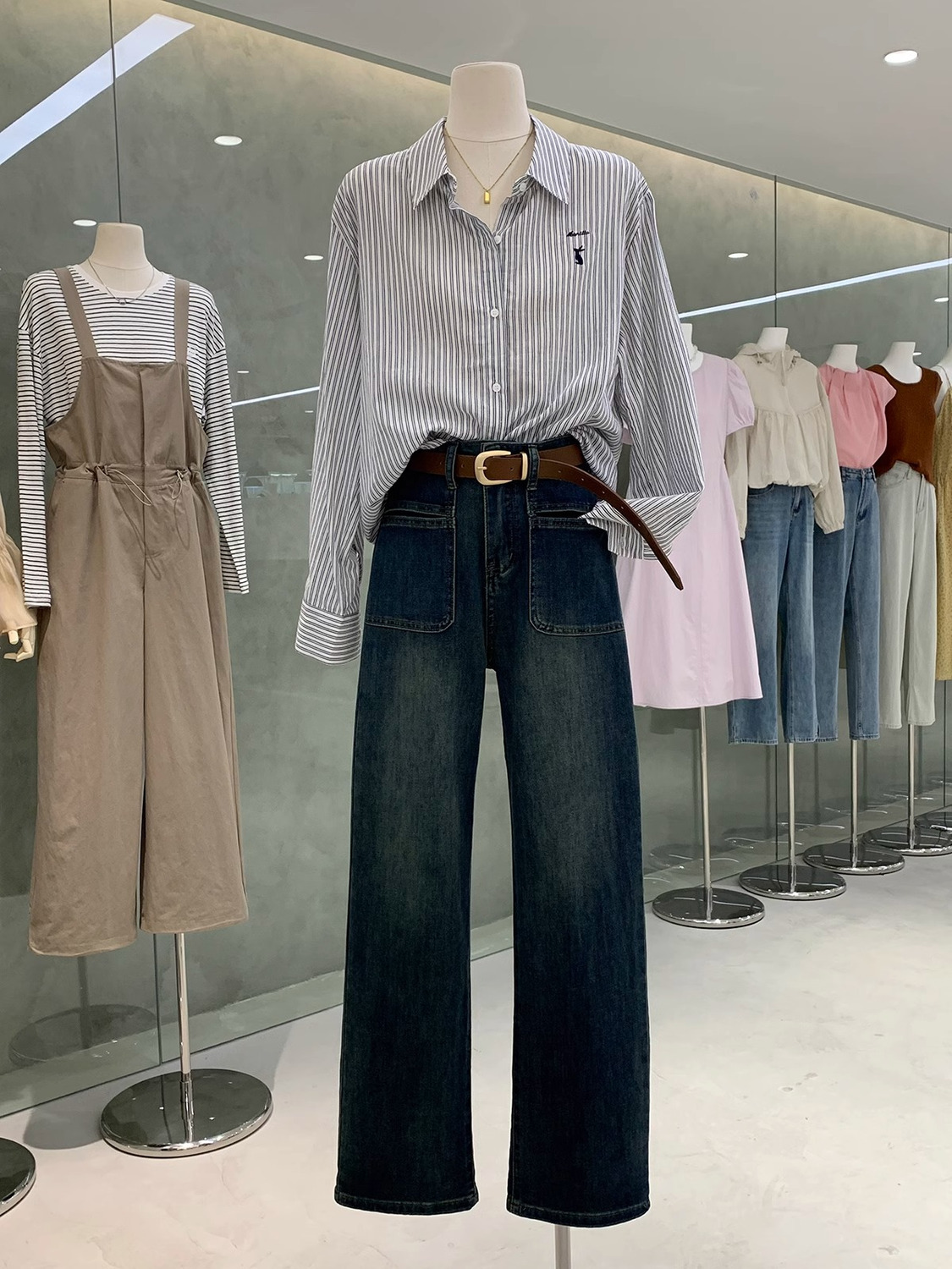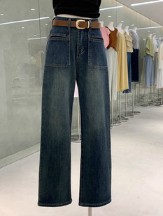 新款 實穿好凹造型 韓系復古直筒牛仔褲 2025年春季 高腰顯瘦闊腿褲由