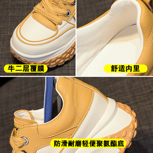 紅色內增高老爹鞋 2025春秋季 網紅真皮女士休閑運動松糕單鞋 子 女款由