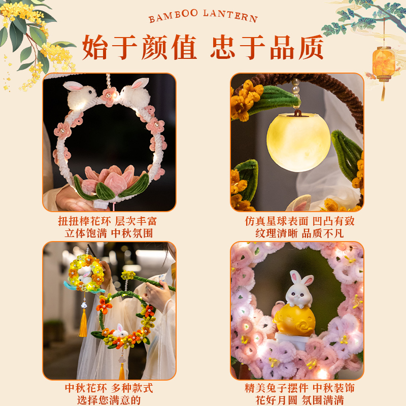 中秋節(jié)燈籠兒童手提兔子花燈掛飾扭扭棒幼兒園手工diy荷花燈漢服