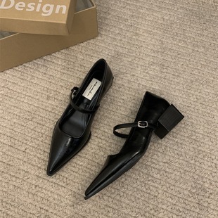 女鞋 2025年春新款 單鞋 氣質名媛法式 尖頭瑪麗珍鞋 淺口粗跟紅色婚鞋由