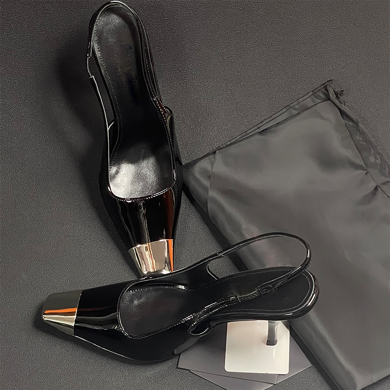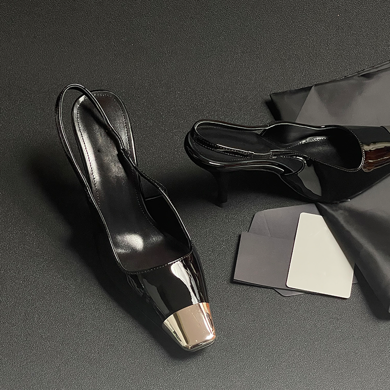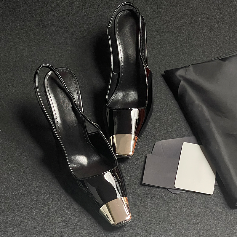 細跟單鞋 otren樸彩英同款 黑色漆皮高跟鞋 2025年新款 方頭包頭涼鞋由