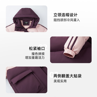 連帽保暖加厚兒童外套男女童拼色上衣 千仞崗2025年秋冬羽絨服長款由