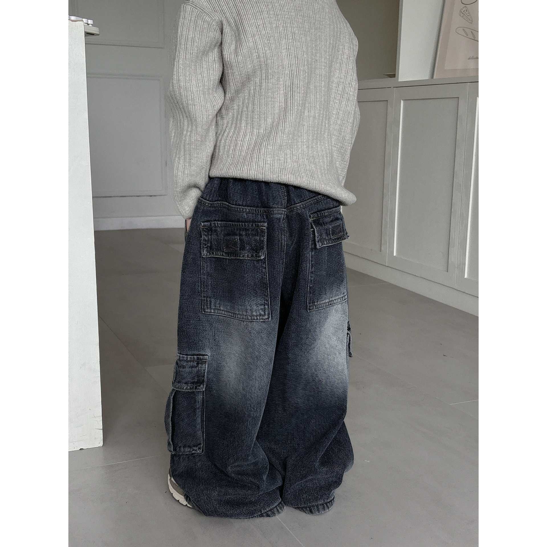 赫米童裝 兒童廓形彎刀不掉色牛仔褲 寬松闊腿長褲 中大童 2025秋冬款