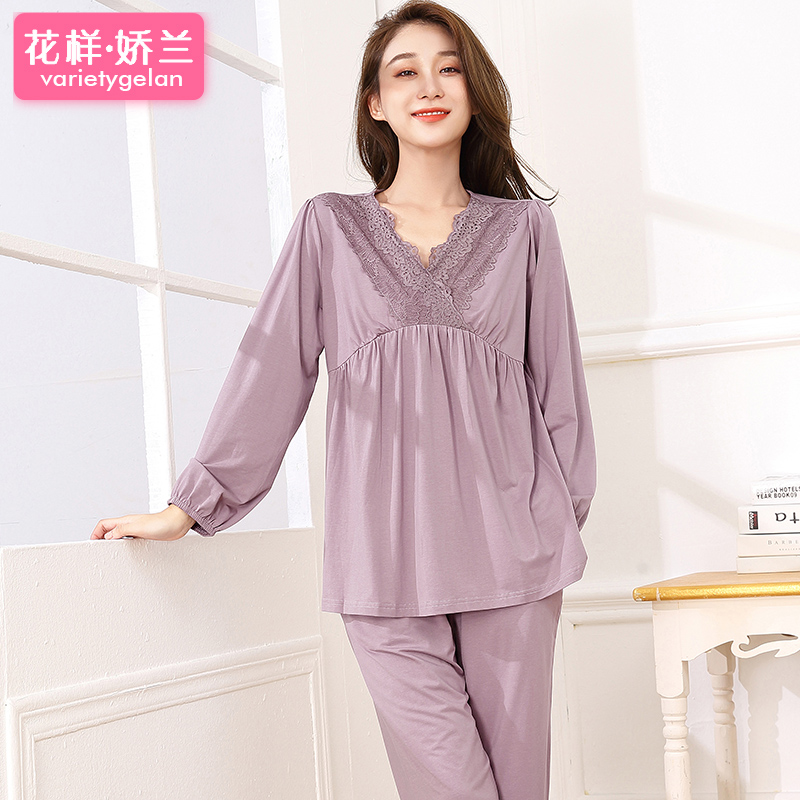 V領(lǐng)大碼 女士秋季 牛奶家居服女秋 秋冬薄款 套裝 竹纖維睡衣長袖 長褲由