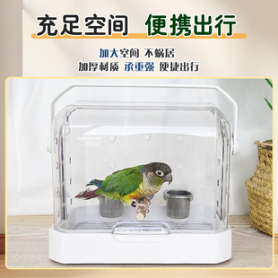 便攜新款 鸚鵡外出籠觀賞外帶站桿食盒虎皮玄鳳透明鳥籠 寵大條由