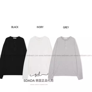 BUTTON T恤 韓國代購 SLEEVE 系扣半開套指長袖 LONG 25F WARMER由