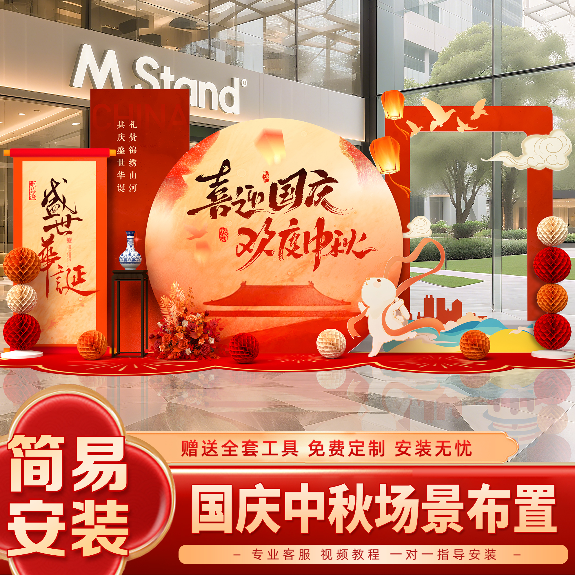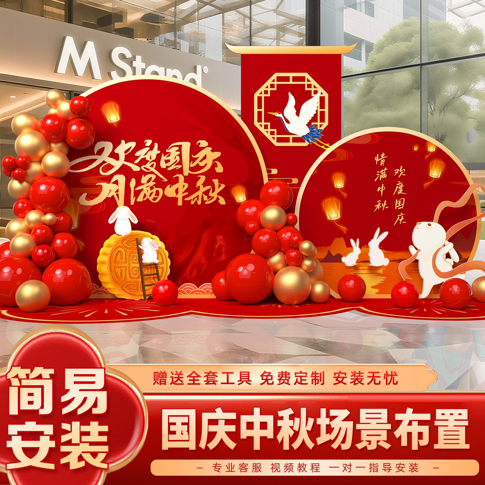 飾美陳活動氛圍擺件場景布置kt背景板 2025中秋國慶主題商場店鋪裝由