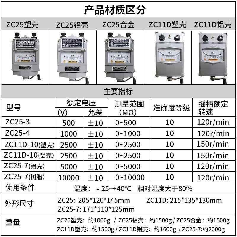 7電工搖表500v兆歐表1000手搖2500絕緣電阻測試儀 祥瑞德zc25