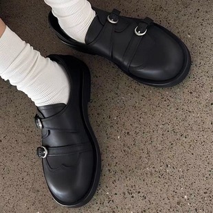 厚底單鞋 達(dá)芙妮黑色小皮鞋 女2025秋季 新款 一腳蹬英倫風(fēng)淺口樂(lè)福鞋