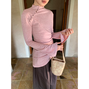 不規則下擺喇叭袖 T恤女秋 包扣長袖 dorydory絕美巨好看小上衣中式由