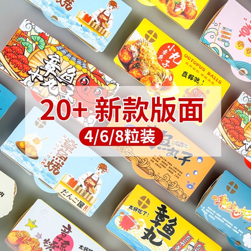 章魚小丸子盒章魚燒包裝 8粒免折帶蓋商用一次打包盒子定制 盒4粒6由