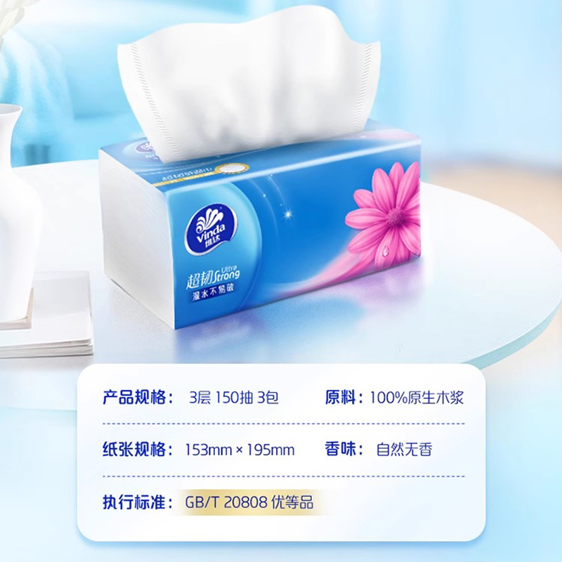 維達超韌抽紙M碼 大包大尺寸加大家用餐巾紙面巾紙巾 150抽3包提裝由