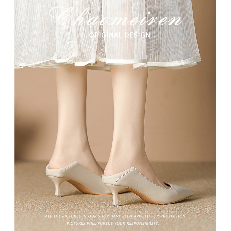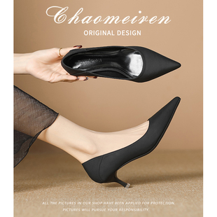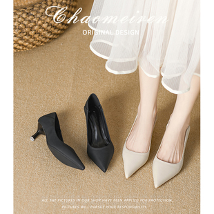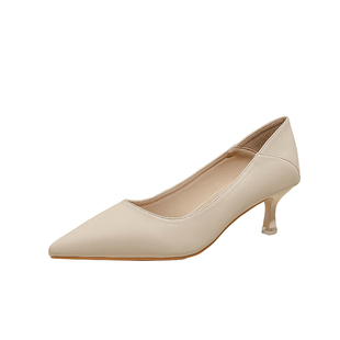 女不累腳法式 2025年春季 新款 尖頭細跟高跟鞋 杏色 職業通勤中跟單鞋由