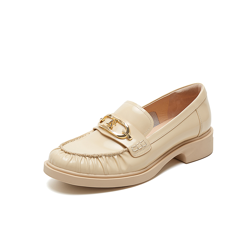 軟底漁夫豆豆深口單鞋 子E7S1DCA5 女2025新款 百麗復古羊皮樂福鞋