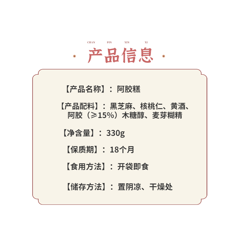 東阿百福盛世官方正品 精美禮盒 未添加蔗糖 開袋即食 阿膠糕330g由