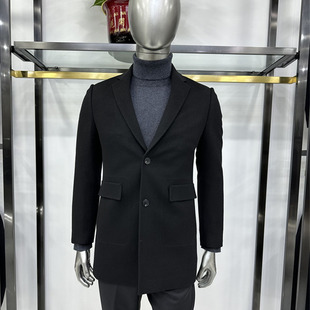 100綿羊毛新款 羊毛大衣 中長風衣外套西服領扣版 商務休閑微厚 男士由