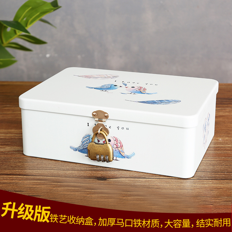 簡約存錢鐵盒子密碼 箱百寶箱儲物盒置物盒雜物盒 鎖小箱子兒童密碼由