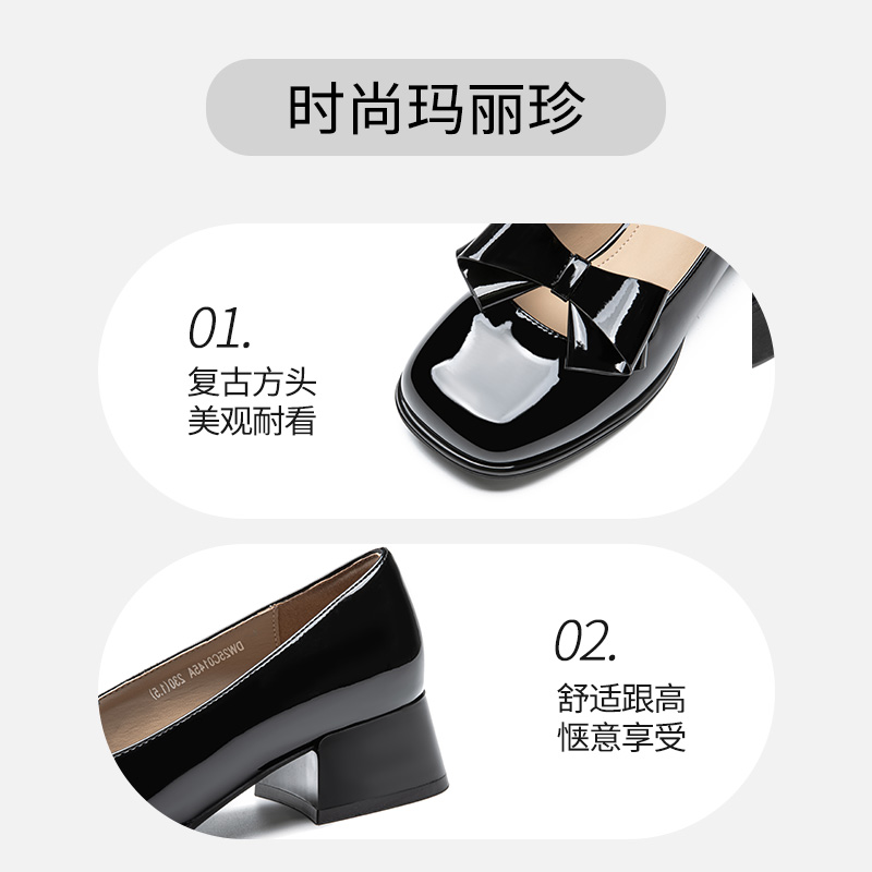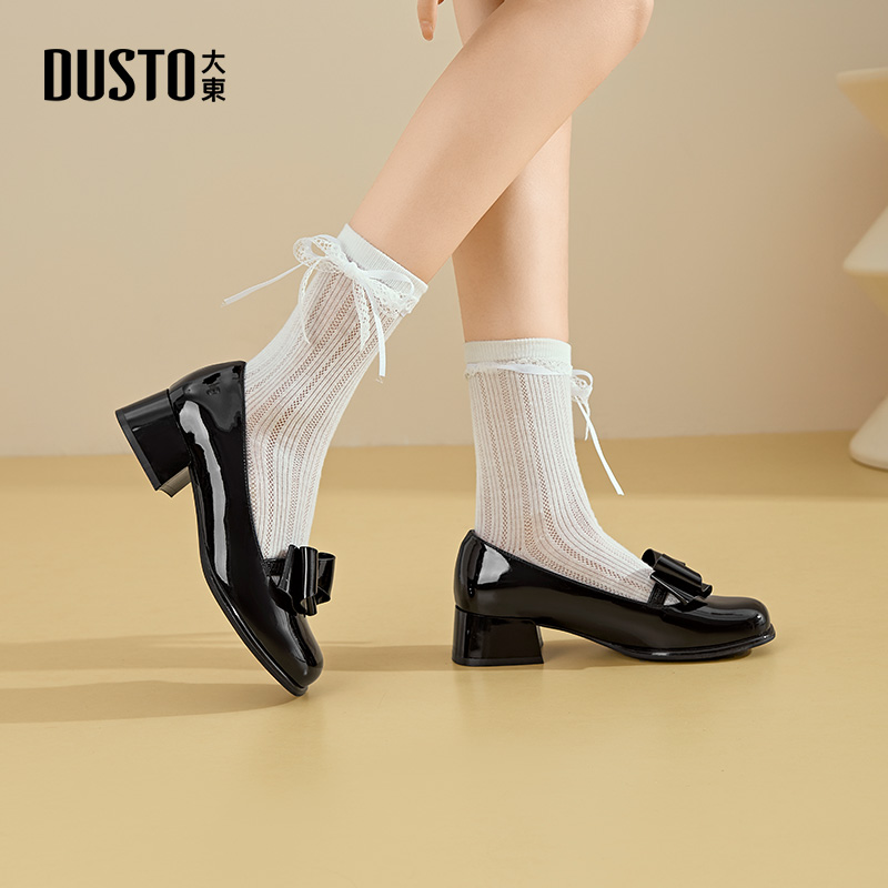 大東瑪麗珍女鞋 新款 淺口女單鞋 粗高跟甜美蝴蝶結配裙子女 2025秋季由