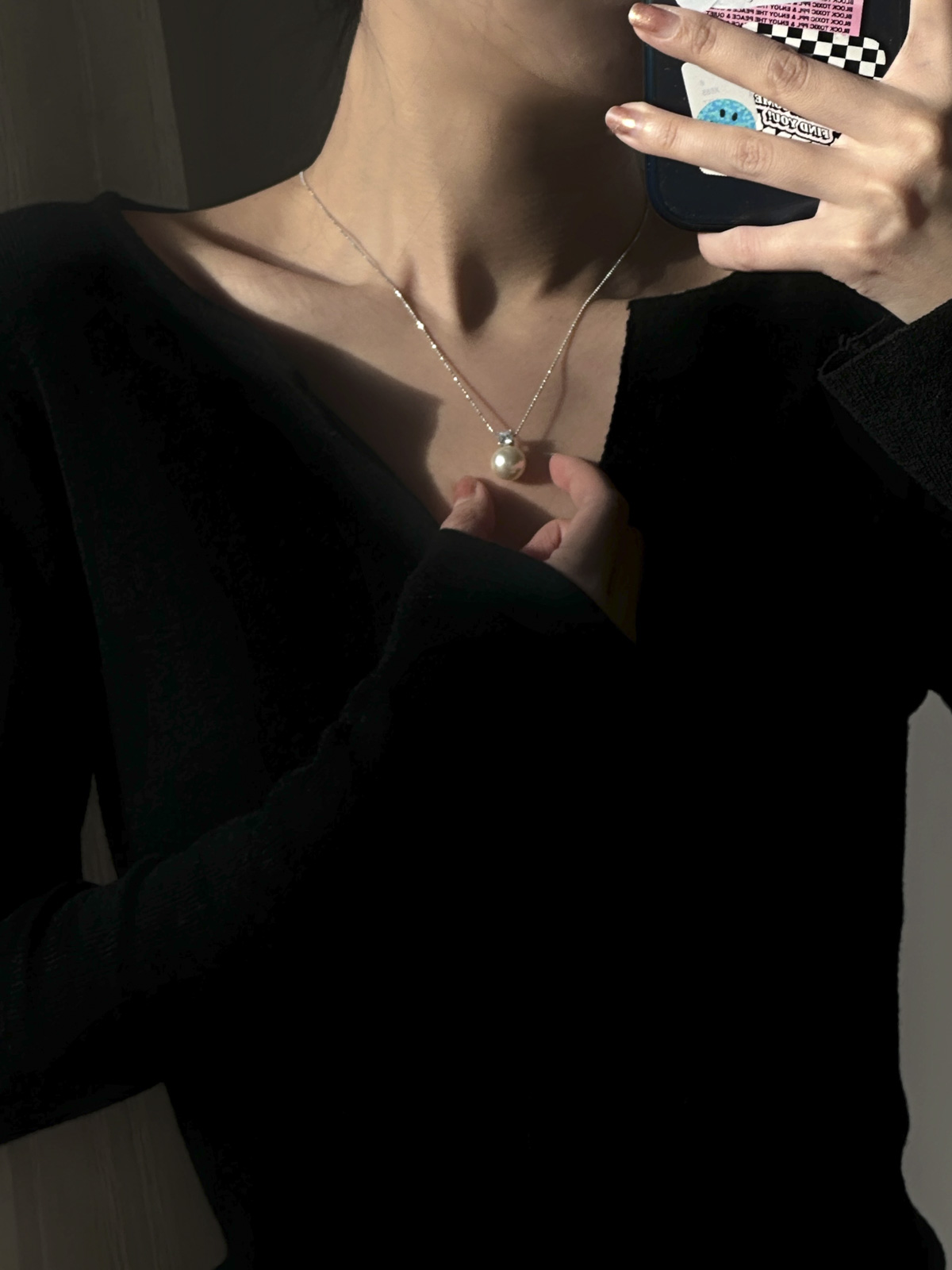 WHYs經(jīng)典 正圓施家珍珠鑲嵌鋯石純銀吊墜簡(jiǎn)約輕奢通勤項(xiàng)鏈 戴妃款由
