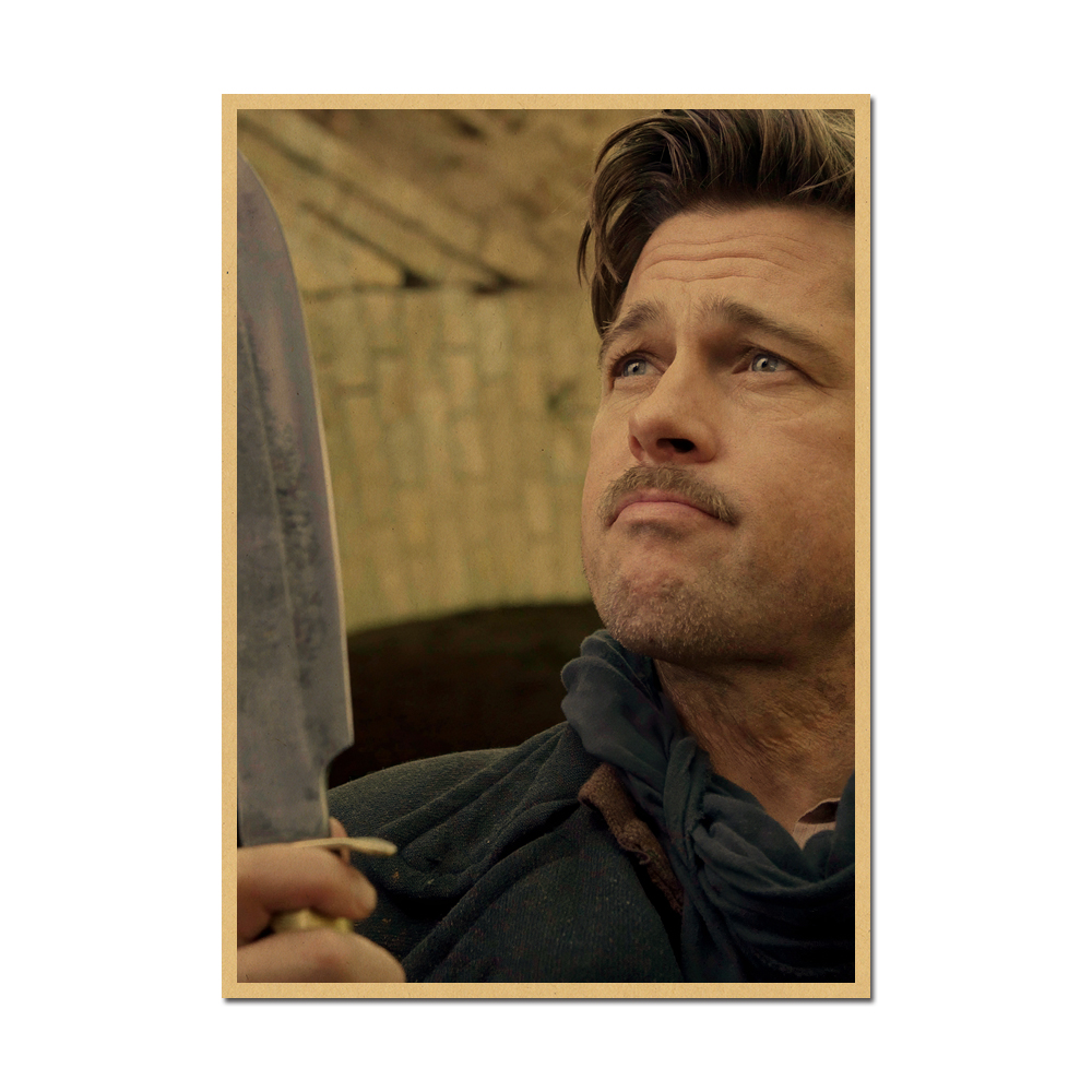 男明星帥哥復古牛皮紙畫房間墻貼畫 布拉德皮特電影海報好萊塢經典由