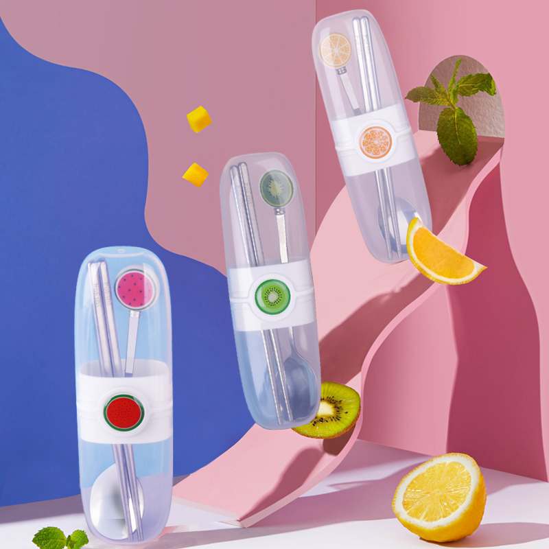 兒童餐具可愛三件套學(xué)生宿舍收納盒子 便攜外帶不銹鋼筷子勺子套裝由