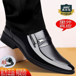 秋季 皮鞋 男英倫風真皮休閑軟底舒適上班內增高新郎結婚鞋 商務正裝