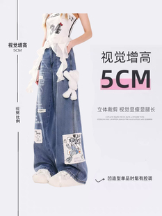 飾休閑闊腿長褲 元 小熊裝 新款 氣少女卡通印花直筒牛仔褲 女2024秋季由