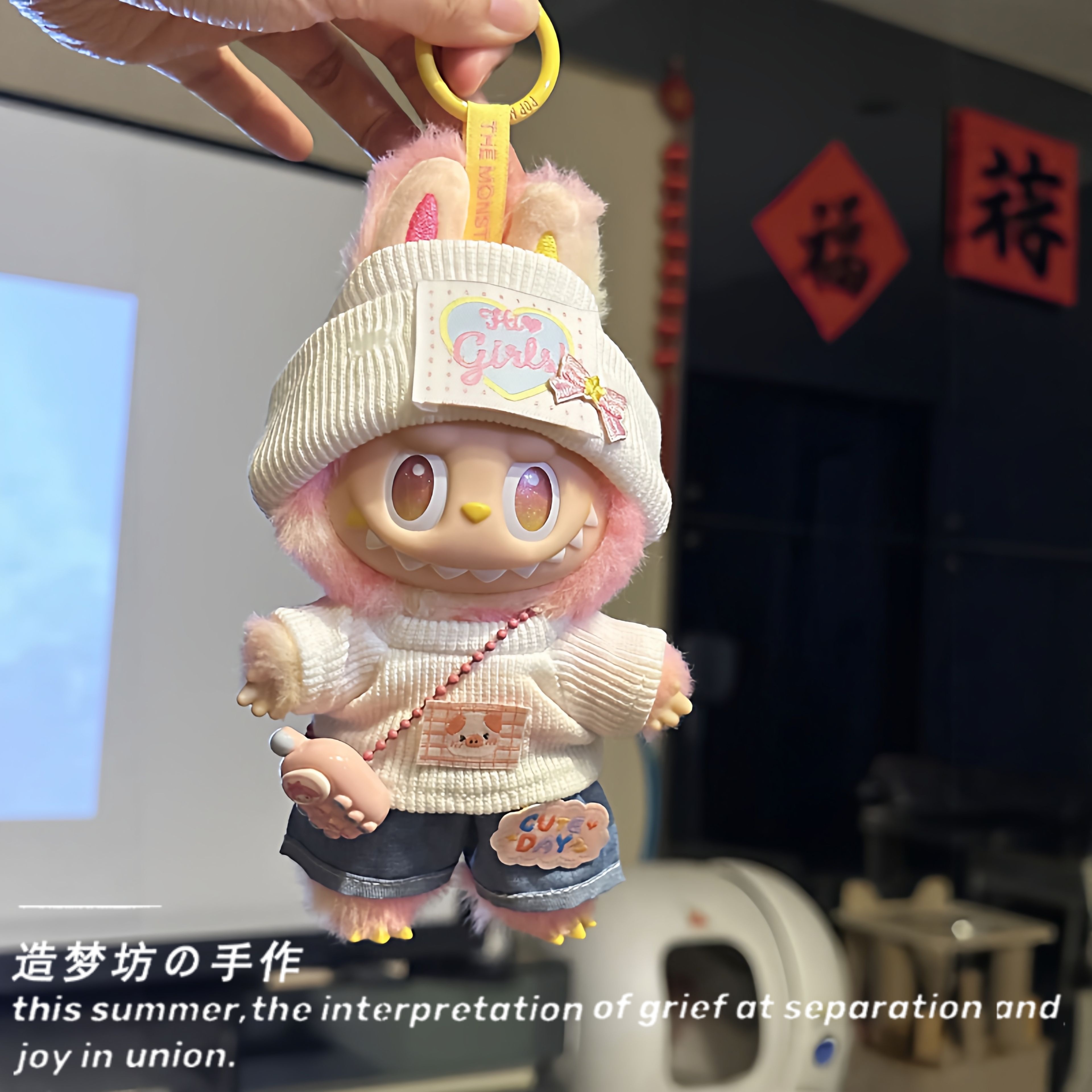 17cm拉布布labubu娃衣10cm棉花娃娃米奇家族黑白灰潮流衛衣帽衫 褲