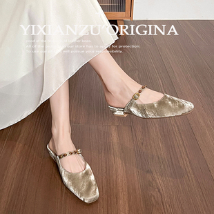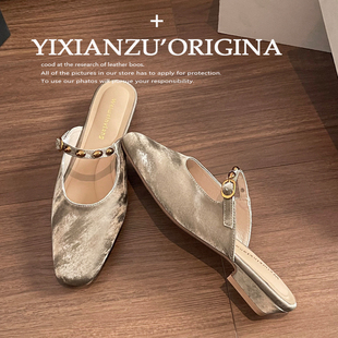 2025新款 女夏外穿高級感法式 絕美不累腳涼拖仙女穆勒鞋 半包頭拖鞋由