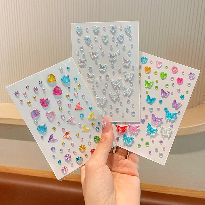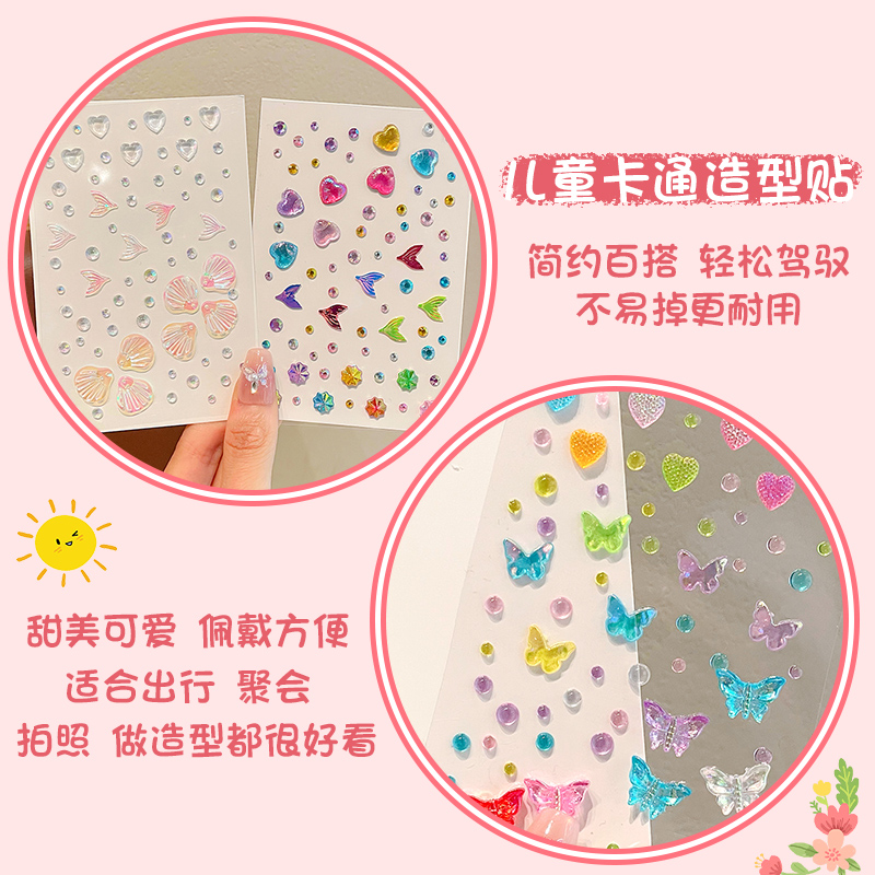 飾貼畫寶寶眼角貼 兒童臉上貼飾品小女孩水晶彩鉆貼立體蝴蝶貼紙臉貼甜美舞臺表演女童寶石化妝貼臉部彩繪貼裝由