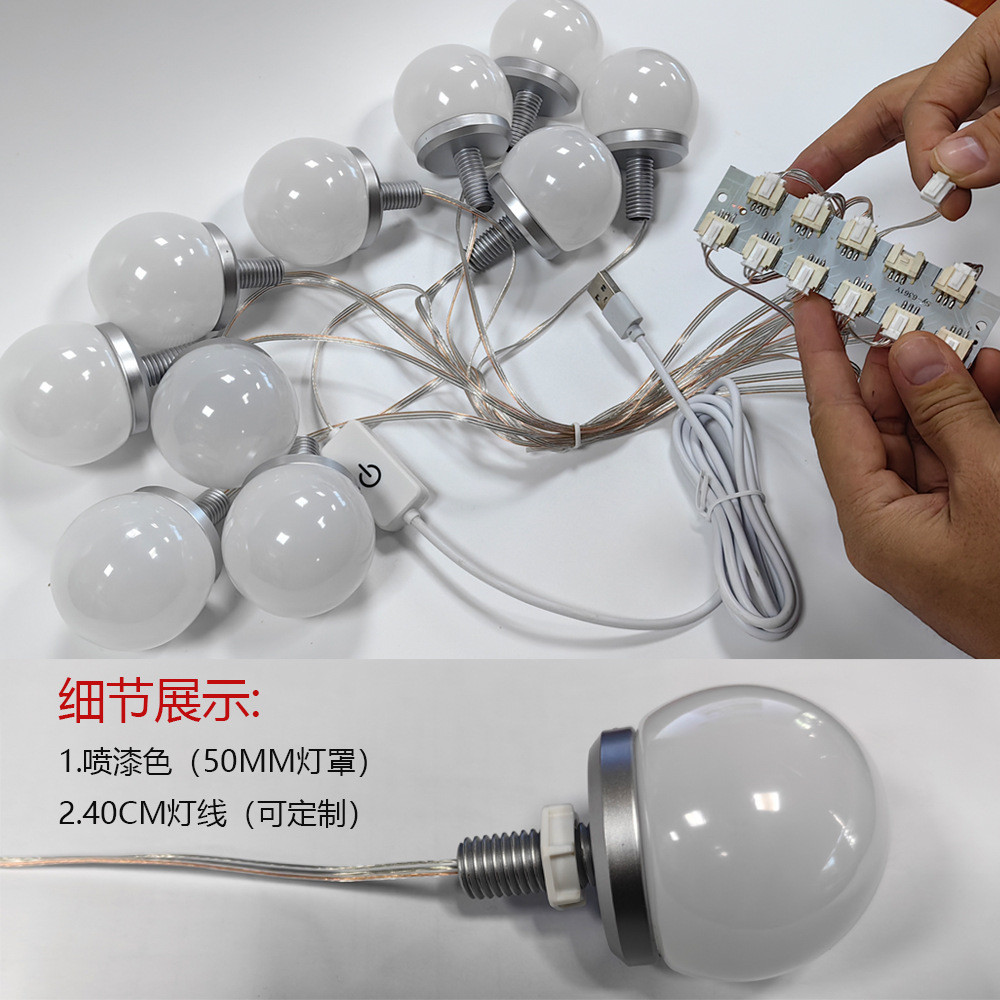 熱銷好萊塢led圓形燈泡化妝燈化妝燈三色補光燈鏡前燈打孔化妝鏡由