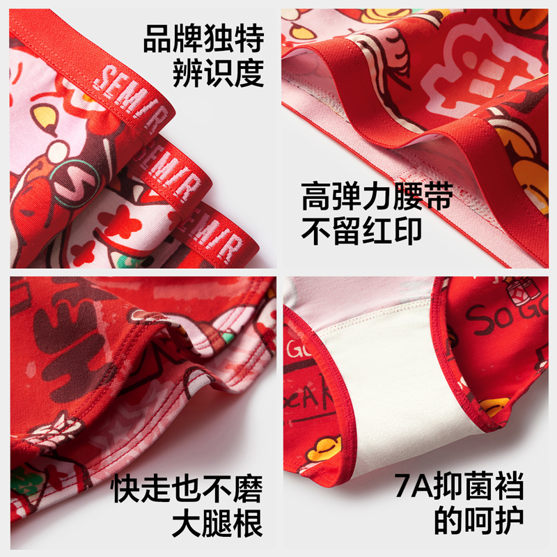森馬內褲 本命年屬蛇年2025新年 女純棉100%棉襠7A級抗菌紅色三角褲由