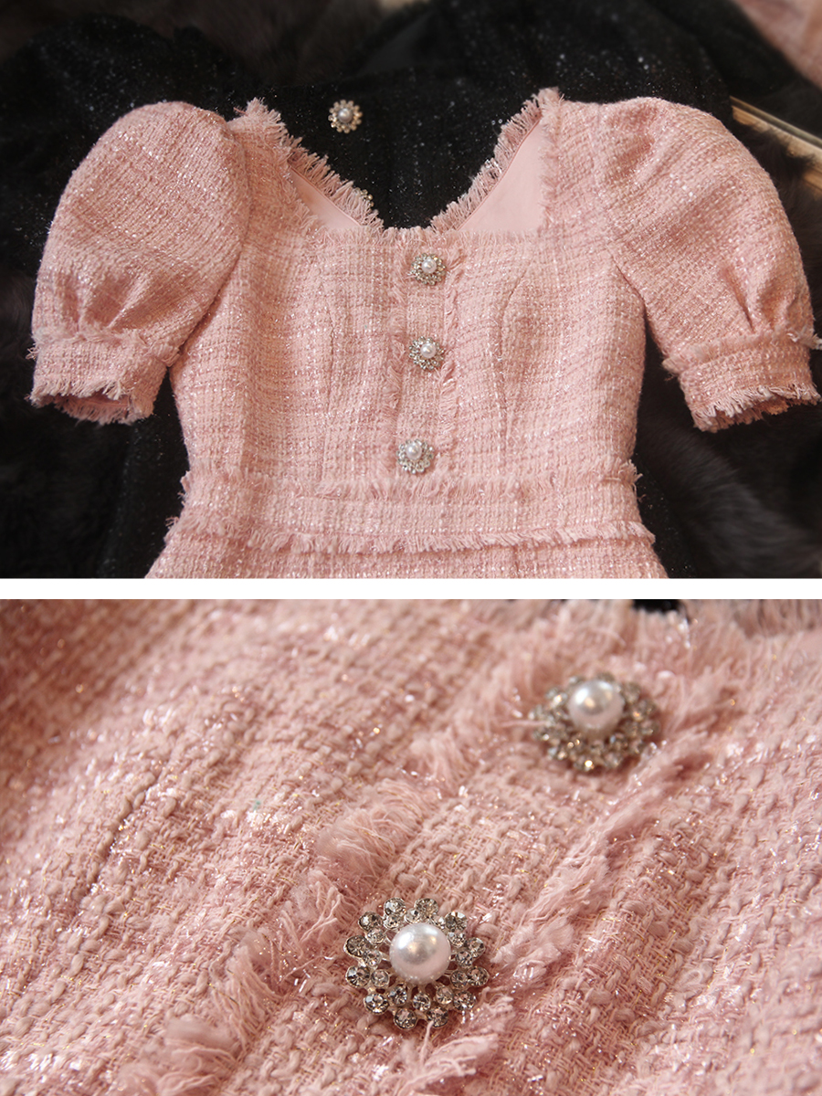 茗思小香風釘珠連衣裙女2025秋季 名媛輕奢收腰顯瘦粗花呢裙子 新款