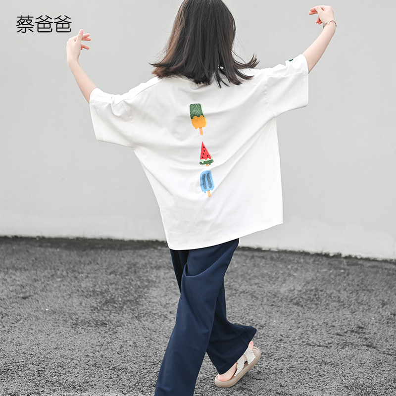 蔡爸爸童裝 洋氣休閑男女兒童白色短袖 t恤冰棍上衣381 177 25夏裝由