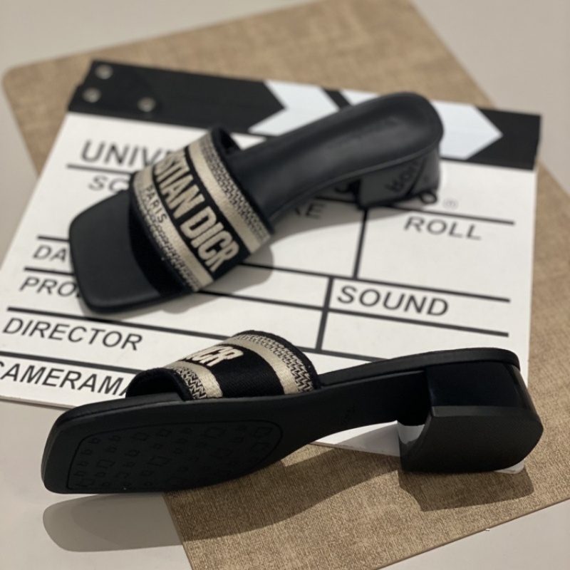 休閑粗跟涼鞋 夏季 女 女外穿網紅同款 一字拖鞋 通勤舒適 2025年新款由