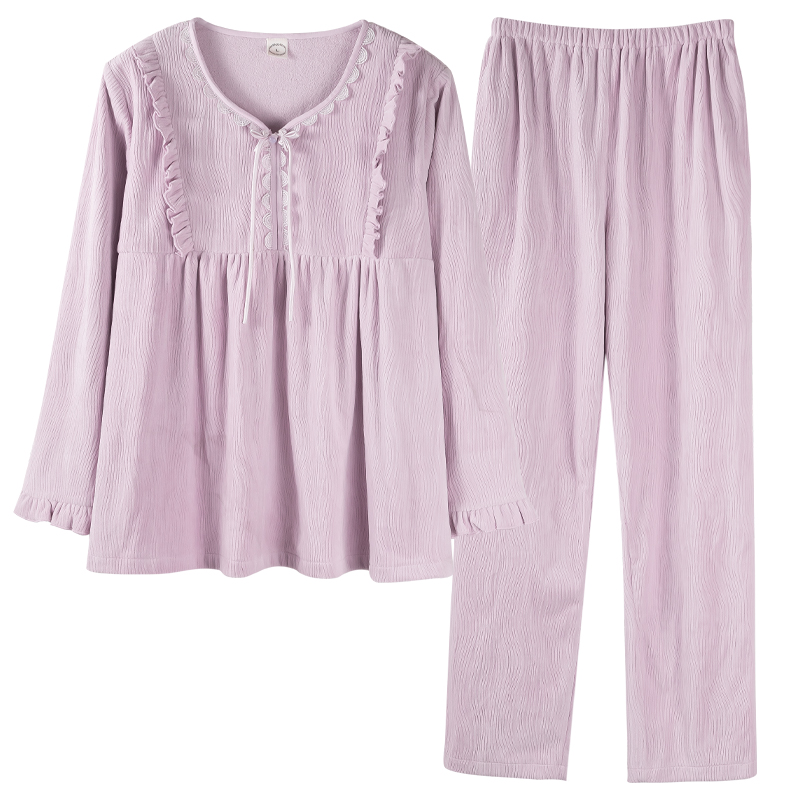 復古國風海島絨睡衣套裝 長褲 甜美氣質家居服珊瑚絨套裝 女士長袖由