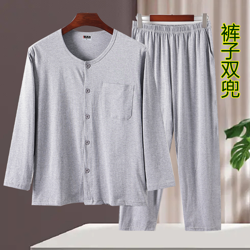 大碼 中老年人純棉秋衣男士 系扣對襟開衫 上衣全棉套裝 保暖內衣 薄款由