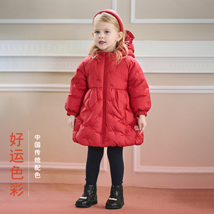 新款 兒童防水新年外套寶寶紅色拜年服 羽絨服冬裝 戴維貝拉女童長款由