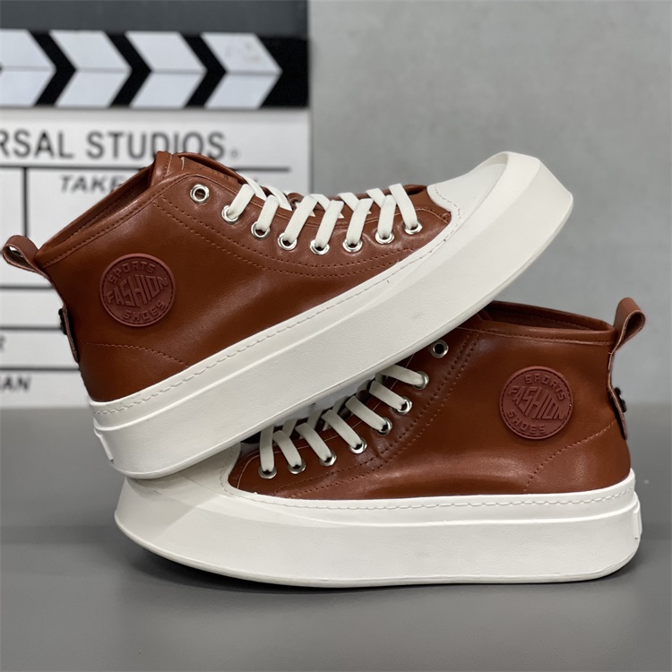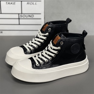 新款 秋季 運動鞋 子學生厚底男鞋 高幫休閑鞋 皮面鞋 征服鴻星爾克板鞋