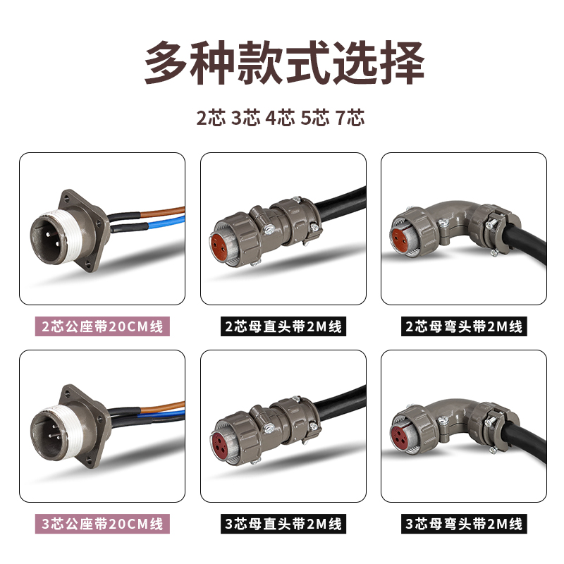 J4Q 航空插頭插座帶線P20K6Q 連接器 開孔20mm 5芯7芯 P20由