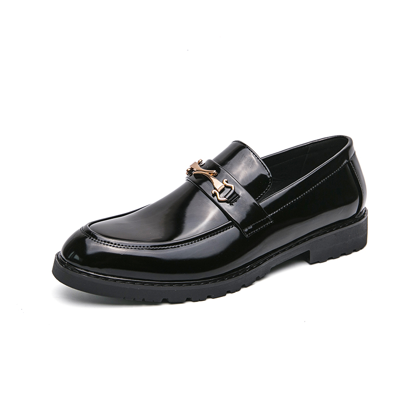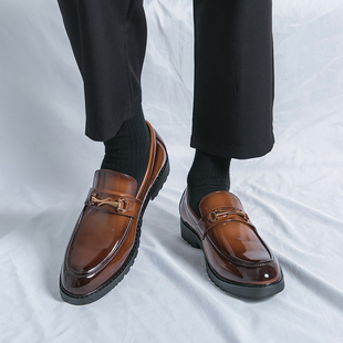 一腳蹬皮鞋 韓版 高級感豆豆鞋 黑色 男英倫風馬銜扣套腳亮面休閑鞋由