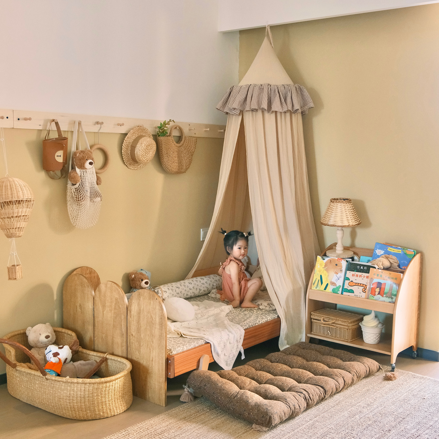 飾格紋圓吊頂遮光床簾純棉帷幔 一顆松果居自制ins風兒童房床頭裝由