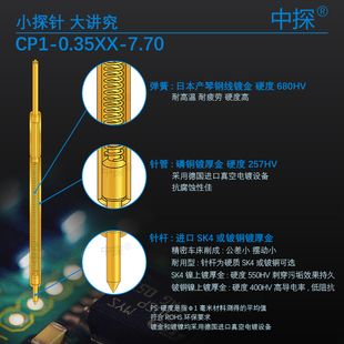 7.7 中探 針桿硬質鈹銅或SK4鍍厚金 0.35XX CP1 BGA高頻 雙頭探針由