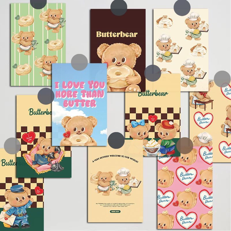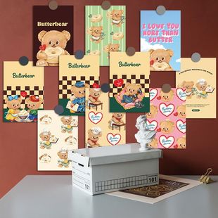 飾貼畫 20張黃油卡片小熊墻貼簡約卡通可愛房間臥室寢室桌面diy裝由