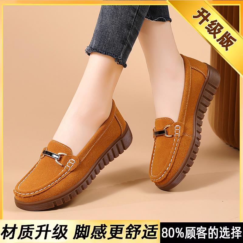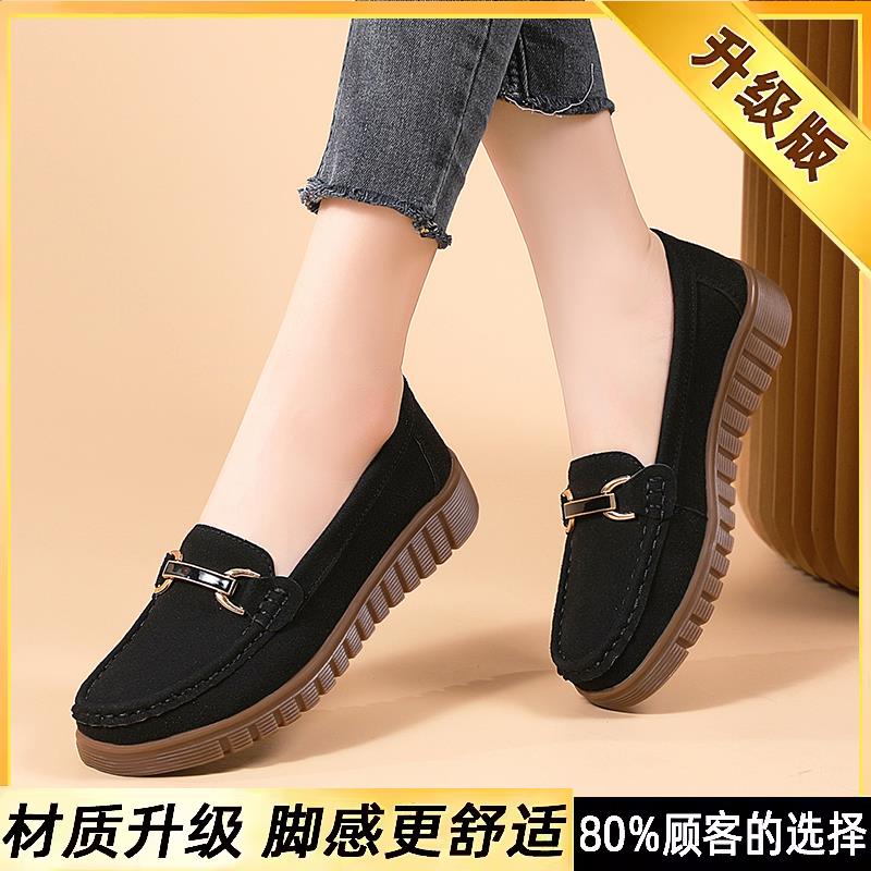 正品 女024春軟秋新款 一腳蹬休2閑媽媽豆豆鞋 底黑色工作 老北京布鞋由