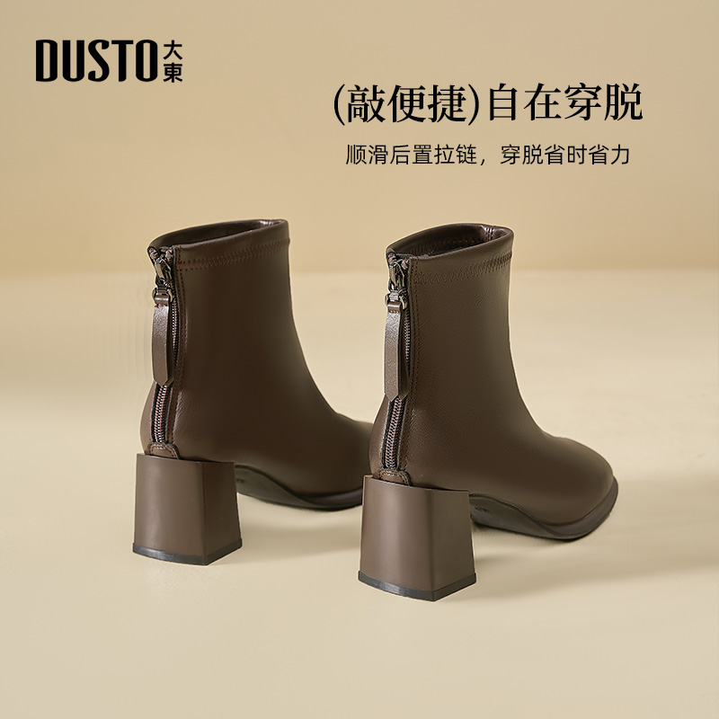 新款 大東時(shí)裝 靴女鞋 2025冬季 0109A 休閑優(yōu)雅粗跟后拉鏈方頭高跟鞋由